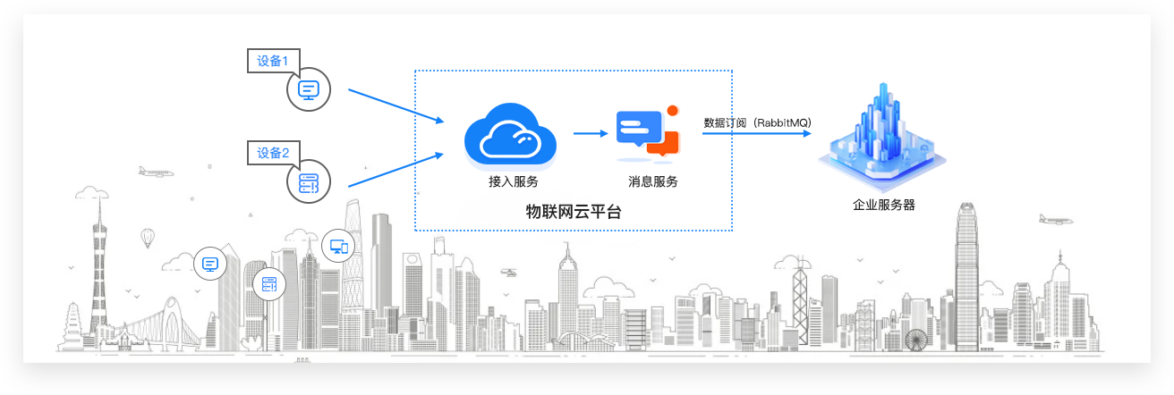 | 数据订阅流转 | 设备接入hth·华体物联网平台后,企业服务端可以通过配置服务端订阅,直接订阅产品下多种类型的消息,物联网平台会将产品下所有设备中已订阅类型的消息,转发至您的服务器。 |