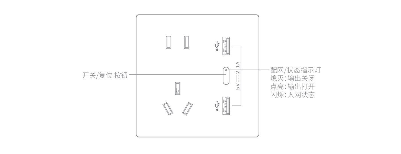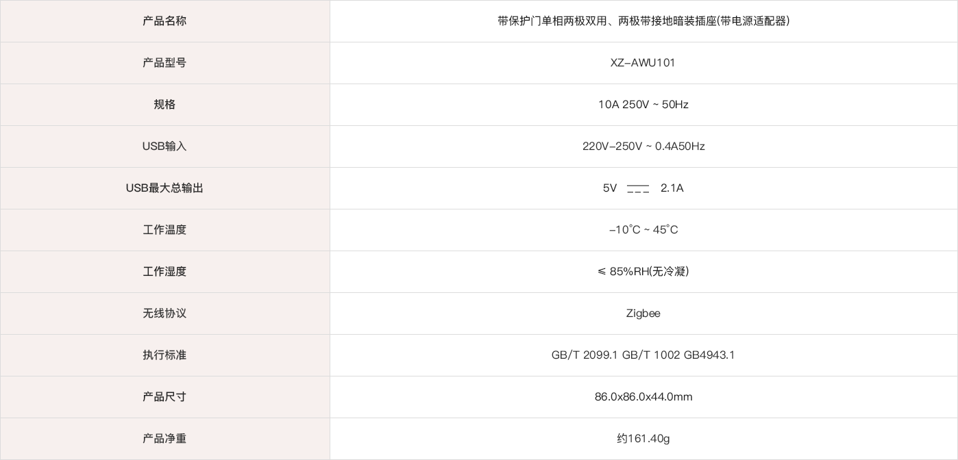 智能五孔带双USB墙壁插座是采用Zigbee无线通信协议的智能插座。通过智能主机,用户可以实现远程控制、定时开关、场景联动等功能,同时该插座提供两个总共2.1A的USB充电口。:1动态范围,有功计量误差小于0.1%,为模块提供工业级的精准计量:它具有更高的集成度和超强的抗电磁干扰性能。该开关针对中国电网的特点进行了特别设计:有超宽的工作电压范围、高可靠性、寿命长、高精度、低功耗的特点。
