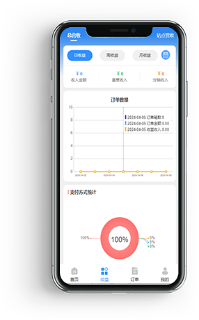 总收益、分销收益、商家收益、站点营收