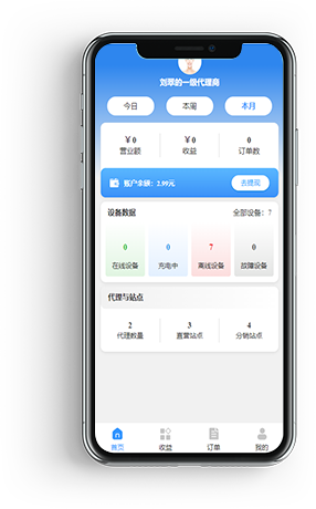 首页可查看营业额数据、设备数据代理预站点数据